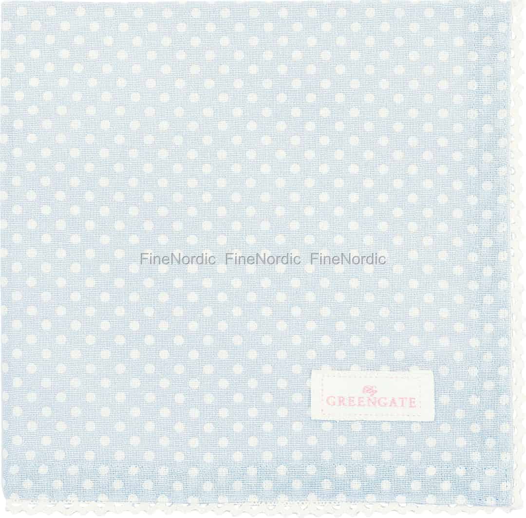 Imagine a table set for a quiet morning coffee or a cheerful afternoon tea. This charming cloth napkin from GreenGate, with its soft blue polka dots and delicate lace edge, brings a touch of timeless Scandinavian romance to these simple moments.