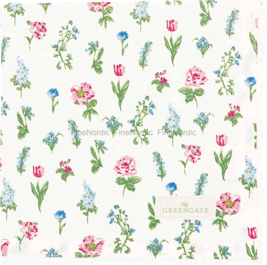 Imagine your table set with the gentle charm of a Scandinavian country garden. The Estrid White napkin from GreenGate captures this moment perfectly, with its delicate floral print scattered across soft, pure cotton.