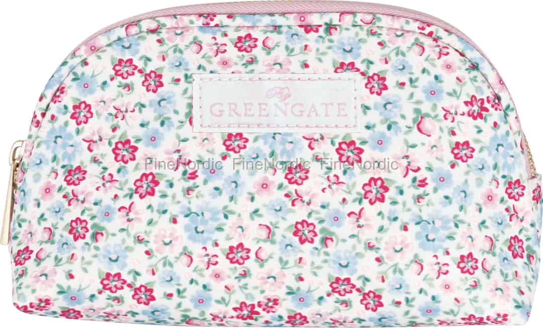 Bring a little piece of Scandinavian summer with you, wherever your day leads. The Louisa White cosmetic bag from GreenGate is a celebration of simple joys, with its cheerful ditsy floral pattern dancing across a crisp white background. The durable oilcloth exterior is wonderfully practical, protecting your essentials from spills and making it easy to keep clean. Its gently curved silhouette, accented by a soft pink zipper and a glint of gold, feels lovely to hold and is a delight to discover in your bag.