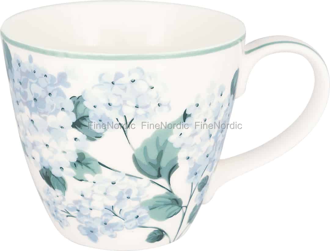 The Liliana White collection from GreenGate is a love letter to the quiet charm of a garden in full bloom. Each mug is a canvas for clusters of soft blue hydrangeas, rendered in a delicate watercolour style that feels both timeless and fresh. The gentle green of the leaves and the hand-painted rim evoke the feeling of a peaceful stroll through a sun-dappled meadow. It’s a piece designed not just to hold your drink, but to cradle a moment of pure, simple joy.