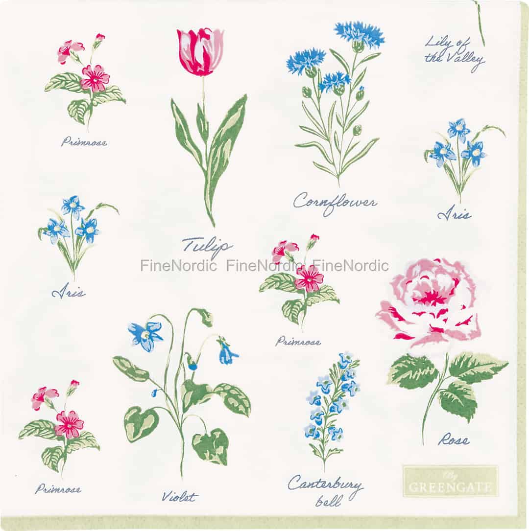 Imagine your table set with the delicate beauty of a sun-dappled garden. GreenGate's Agnes White napkins capture this simple joy, featuring charming botanical illustrations that bring a touch of timeless elegance to any occasion.