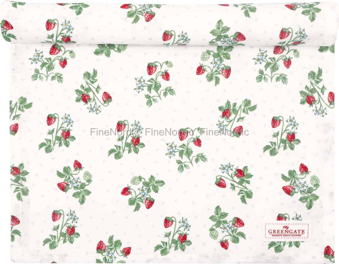 Imagine a sun-drenched morning in a Scandinavian garden, with the sweet scent of wild strawberries in the air. This delightful 'Berry White' table runner from GreenGate captures that very moment, bringing a touch of nostalgic charm and summery warmth to your home.