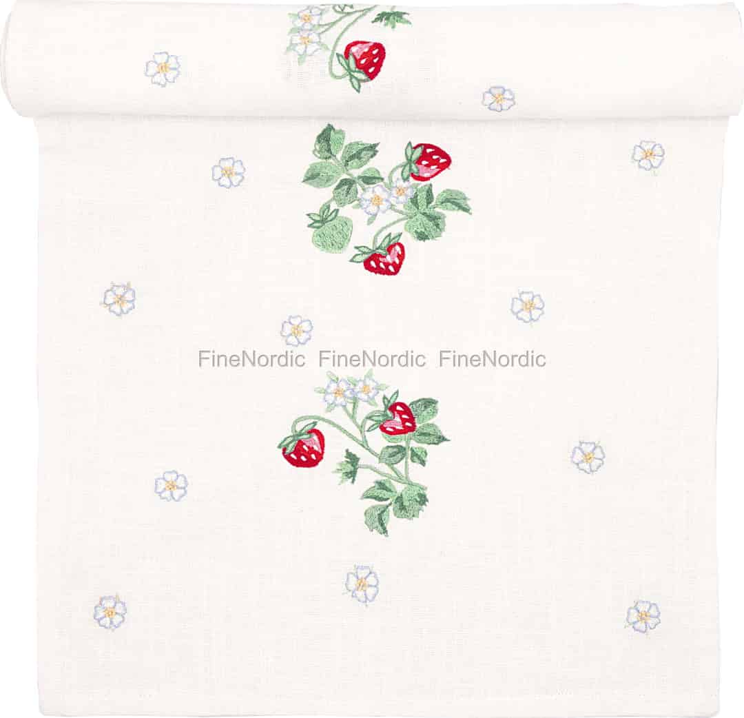 Picture a sun-drenched morning in a Scandinavian cottage garden. This delightful table runner from GreenGate captures that simple joy, with sweet strawberries and delicate blossoms embroidered onto pure, crisp cotton. It's an invitation to slow down and savour the moment.
