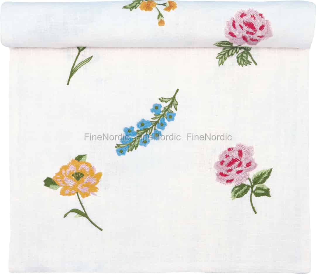 Imagine a gentle summer breeze carrying the scent of a blooming garden. The Estrid White table runner captures this idyllic moment, scattering delicate, colourful wildflowers across your table in beautiful embroidery. It's a touch of countryside charm for your everyday gatherings.