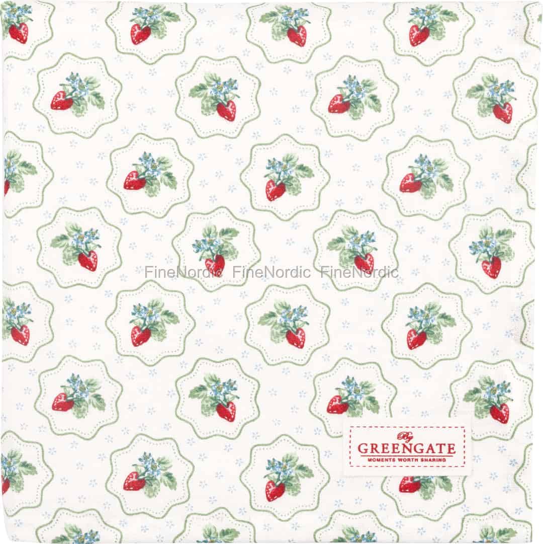 GreenGate captures the essence of a sun-kissed Scandinavian summer with the Berry Petit White collection. Each detail, from the ripe red strawberries nestled amongst green leaves to the dainty blue blossoms scattered across the crisp white cotton, tells a story of simple joys. The charming, scalloped frames around each motif add a touch of vintage-inspired elegance, transforming your table into a canvas of pastoral beauty and warmth. It’s a design that invites you to slow down and appreciate the small, beautiful details in everyday life.