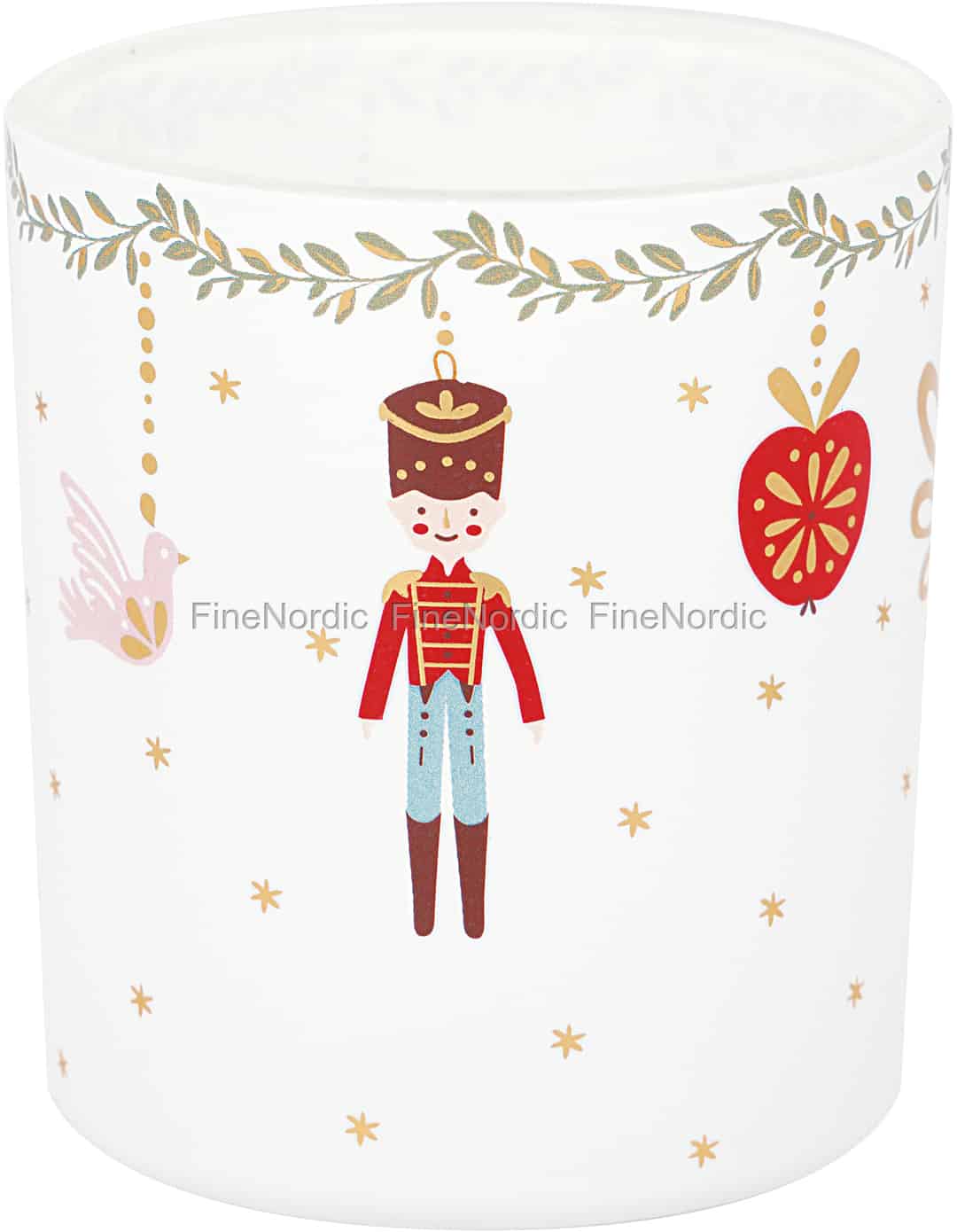 Let the enchanting world of GreenGate's Cindarella collection fill your home with nostalgic charm. This beautiful tealight holder, crafted from frosted glass, serves as a miniature stage for a classic Christmas fairytale. Watch as toy soldiers stand to attention, delicate doves take flight, and festive baubles hang from elegant garlands, all rendered in a soft, vintage-inspired palette. Each detail is designed to spark joy and recall the cherished memories of Christmases past.