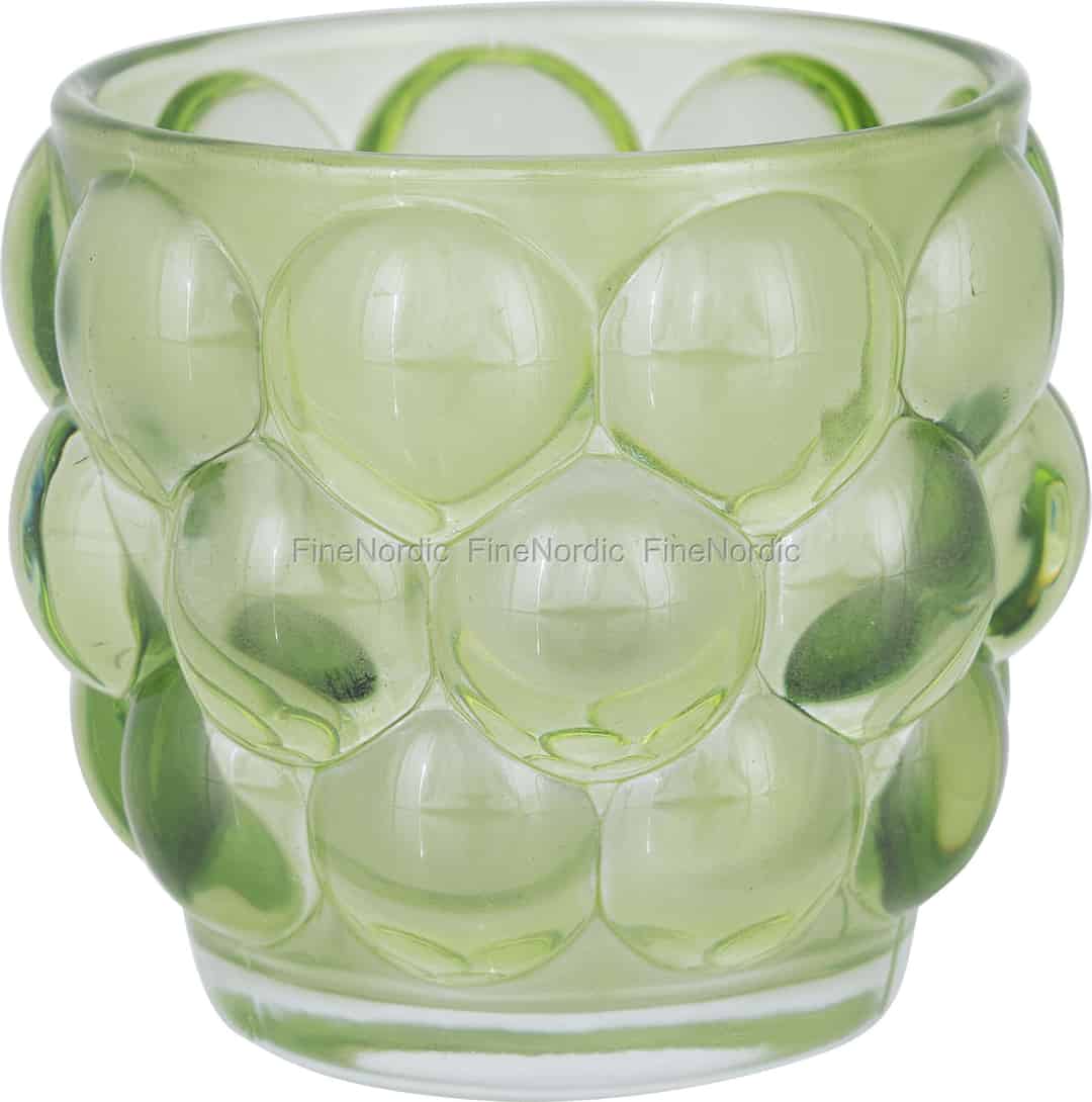 Discover the simple pleasure of candlelight with this exquisite GreenGate tealight holder. Its surface, a delightful pattern of tactile glass bubbles, seems to hold the light, transforming a simple flame into a soft, mesmerising glow. The pale green hue is wonderfully calming, echoing the first tender signs of a Nordic spring. Each curve and dimple in the glass interacts with the light, creating a display that feels both peaceful and alive, perfect for bringing a sense of tranquil beauty to your sanctuary.