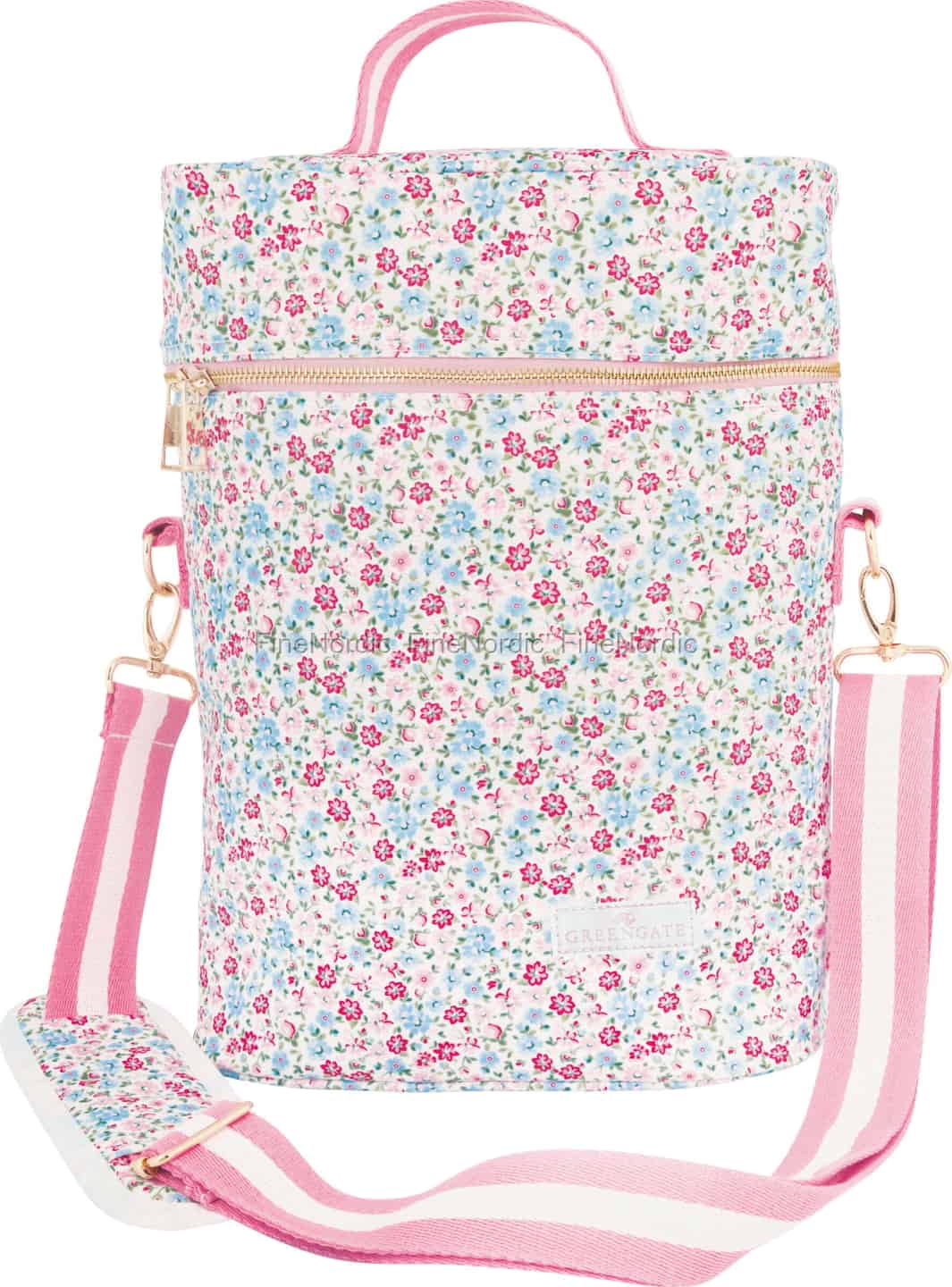 GreenGate’s Louisa White collection captures the essence of a blooming summer garden, and this beautiful wine cooler is no exception. The delicate ditsy floral print, with its soft pinks and blues, evokes a sense of timeless nostalgia, turning a simple picnic into a truly special affair. Every detail has been thoughtfully considered, from the chic pink and white striped strap that adds a playful, modern contrast, to the elegant gold-tone zipper that secures your contents in style. It’s a piece that doesn’t just carry your refreshments; it carries a story of joyful, shared moments.