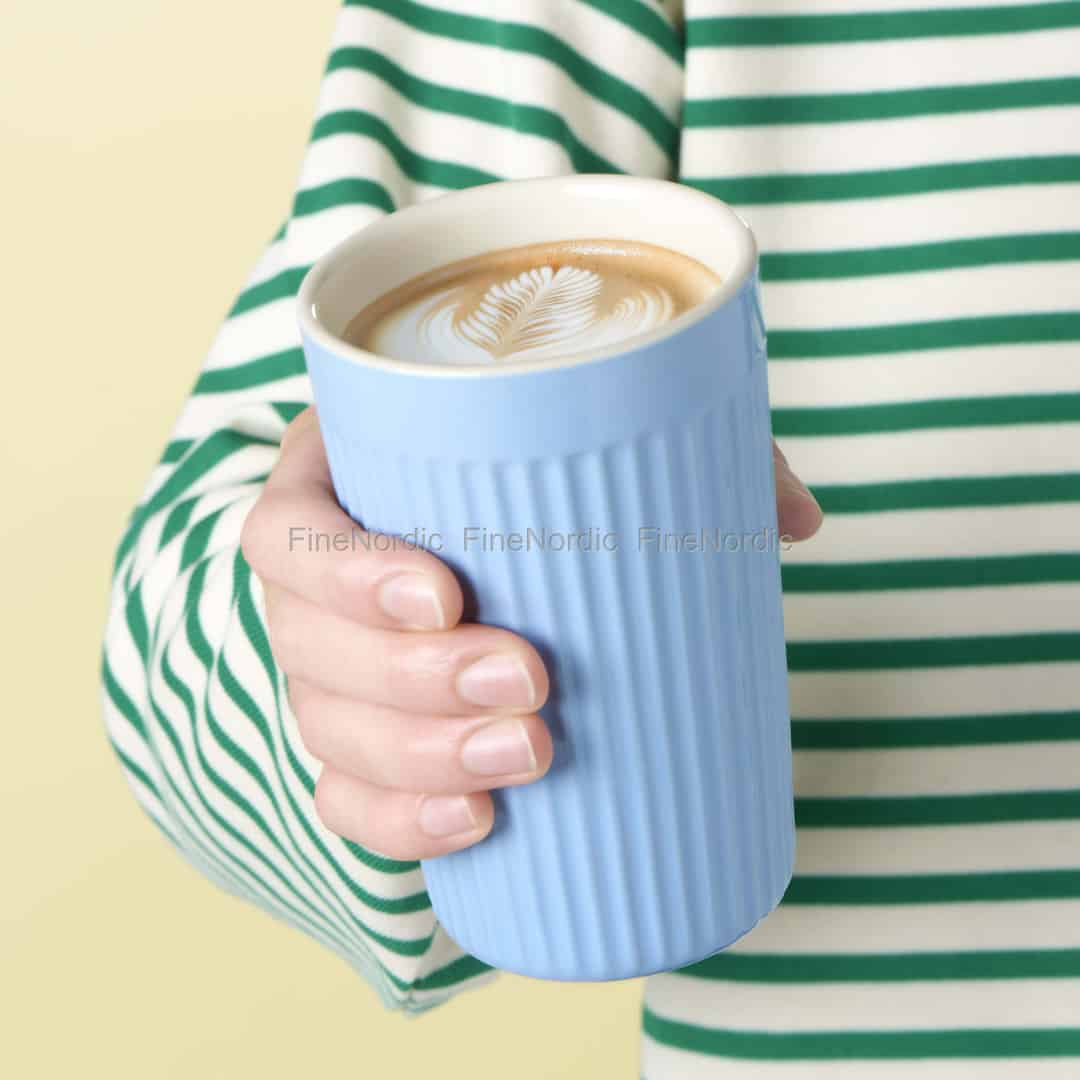 Imagine wrapping your hands around this beautifully crafted mug, filled with a warm, frothy latte. The Mynte collection's signature ribbed texture and gentle Blue Bell hue bring a touch of Danish country charm to your daily coffee ritual.