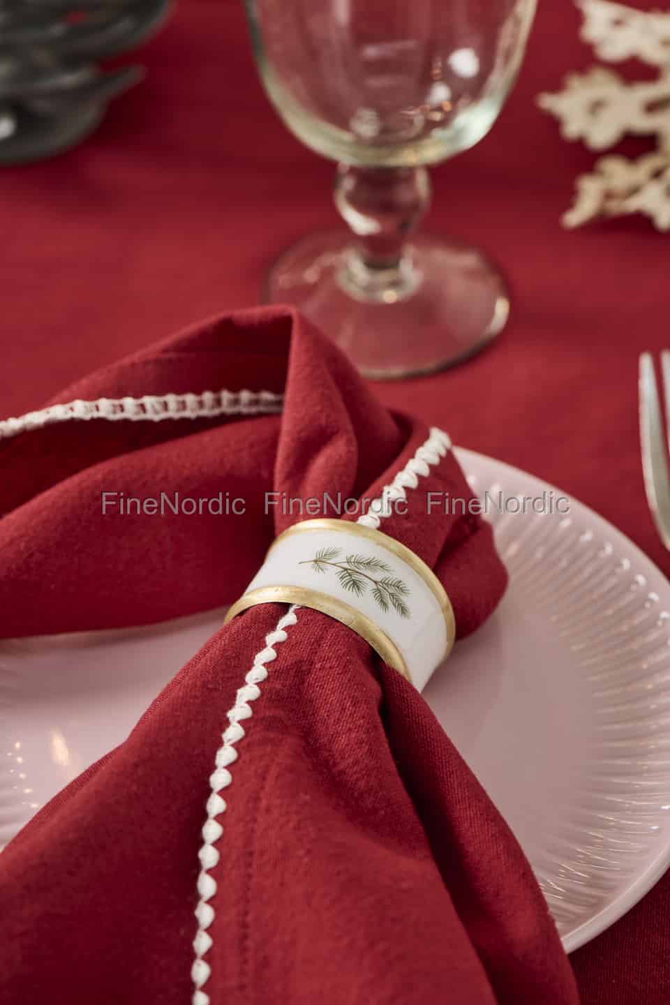Ib Laursen Cloth Napkin "Dagmar" Red with White Border Stitching