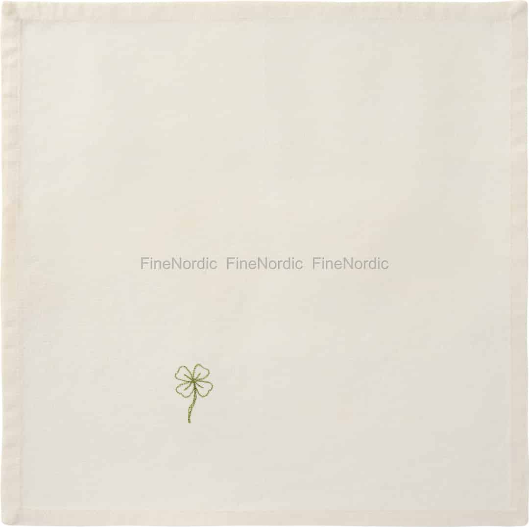 Unfold a little happiness at your next meal. This charming cloth napkin from Ib Laursen, in a warm butter-cream hue, is crafted from soft cotton and features a single, delicately embroidered four-leaf clover—a quiet wish for good fortune.
