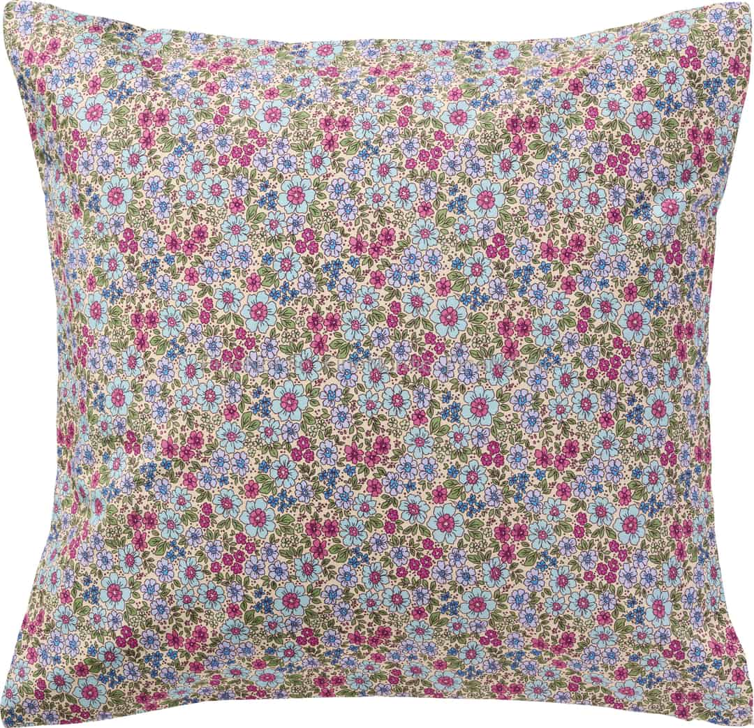 Let the joyful spirit of a Scandinavian summer meadow blossom in your home with this beautiful cushion cover by Ib Laursen. The design features a dense tapestry of wildflowers, where vibrant shades of fuchsia, turquoise, and gentle blues dance across a soft, cream-coloured cotton canvas. Each flower is rendered with a delicate, artistic touch that evokes the feeling of a hand-painted illustration, bringing a sense of warmth and authentic charm to your living space.