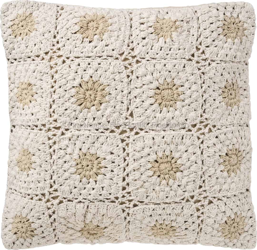 Rediscover the beauty of traditional craftsmanship with this exquisite cushion cover by Ib Laursen. Each square is carefully crocheted from soft, thick cotton yarn, forming a timeless floral pattern that speaks of quiet afternoons and cherished heirlooms. The interplay of cream and natural beige tones creates a soothing visual harmony, while the open-stitch design offers a glimpse of the sturdy canvas beneath. It's a piece that doesn't just decorate a room; it infuses it with a sense of history and gentle, tactile comfort that invites you to reach out and touch.