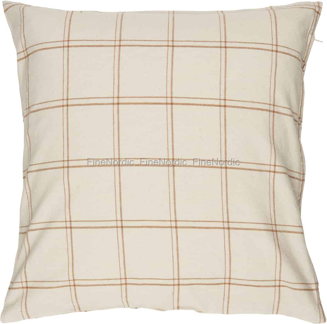 Ib Laursen cushion cover Theodor natural with rustic brown checkered pattern 50 x 50 cm, find it here at FineNordic.