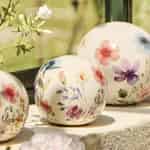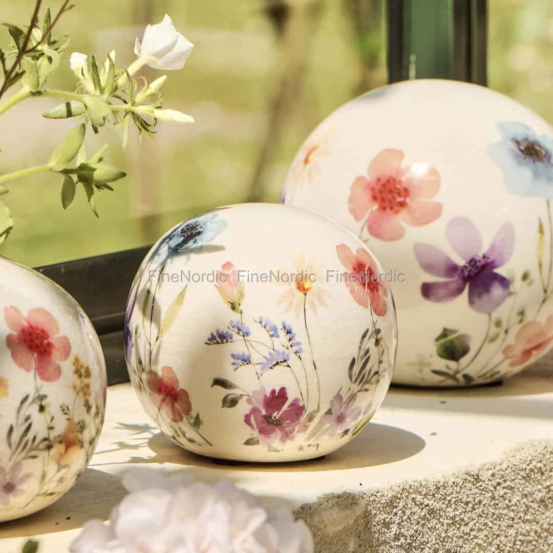 Invite the gentle beauty of a summer meadow into your home with this charming decorative ball. Each ceramic sphere is adorned with delicate, watercolour-style wildflowers, set against a creamy, crackled glaze that whispers of timeless charm.