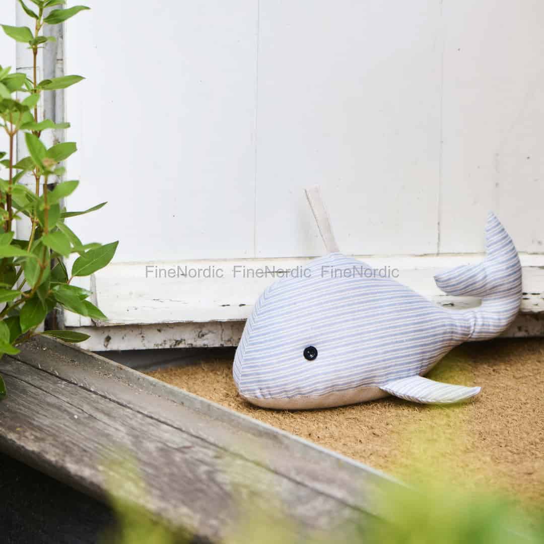 Imagine a sunlit afternoon with windows thrown open, letting a fresh breeze wander through your rooms. The Ib Laursen Whale Door Stopper is designed for just these moments, bringing a quiet, steadfast presence to your home. Its gentle blue and cream stripes evoke the classic charm of a coastal cottage, while the natural texture of the cotton fabric is wonderfully tactile and inviting. Placed by a patio door or holding a bedroom door ajar, it serves as a lovely reminder of serene seaside days.