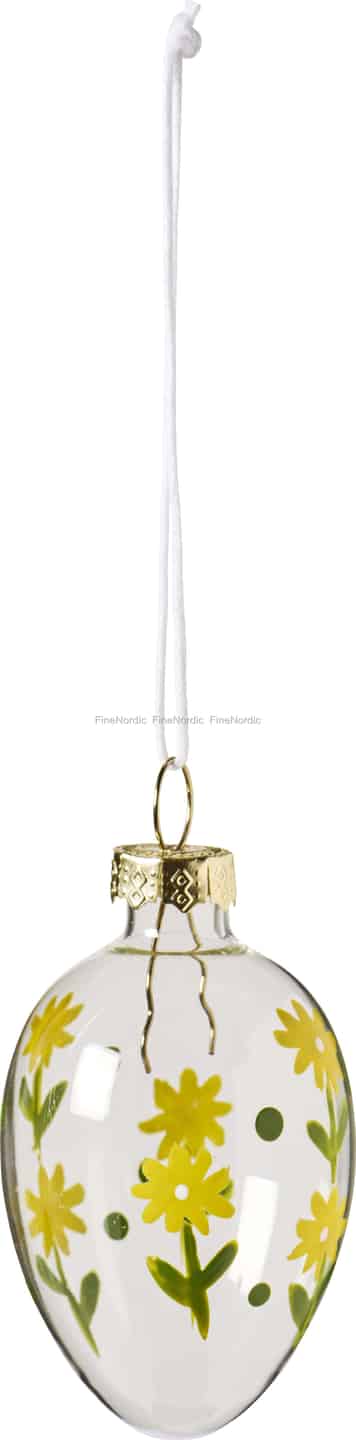 Invite the cheerful spirit of spring into your home with this delightful glass egg from Ib Laursen. Its transparent surface is adorned with sunny yellow flowers, capturing the light and the promise of brighter days ahead. A true whisper of the changing season.
