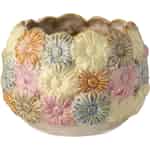 Inspired by the simple joy of a wildflower meadow, the 'Daisy' flower pot by Ib Laursen is a celebration of nature's charm. Each pot is a small work of art, with a surface that comes alive with a dense cluster of three-dimensional daisies. The beautiful, reactive glaze flows over this textured landscape, settling in the petals and centres to create a unique interplay of soft, rustic colours. This process means every piece has its own individual character, just like the flowers in a field.