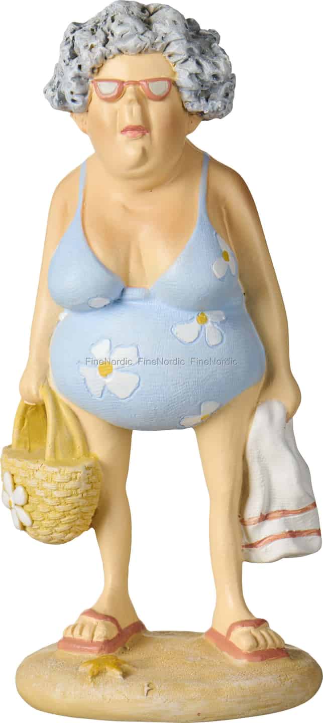 This delightful figurine is more than just a decoration; it’s a small story captured in polyresin. Place her where she can catch your eye and bring a smile to your face – perhaps in your bathroom to create a coastal retreat, or on a mantelpiece as a quirky reminder of sunny days ahead. She’s a celebration of summer, nostalgia, and the enduring charm of the seaside.