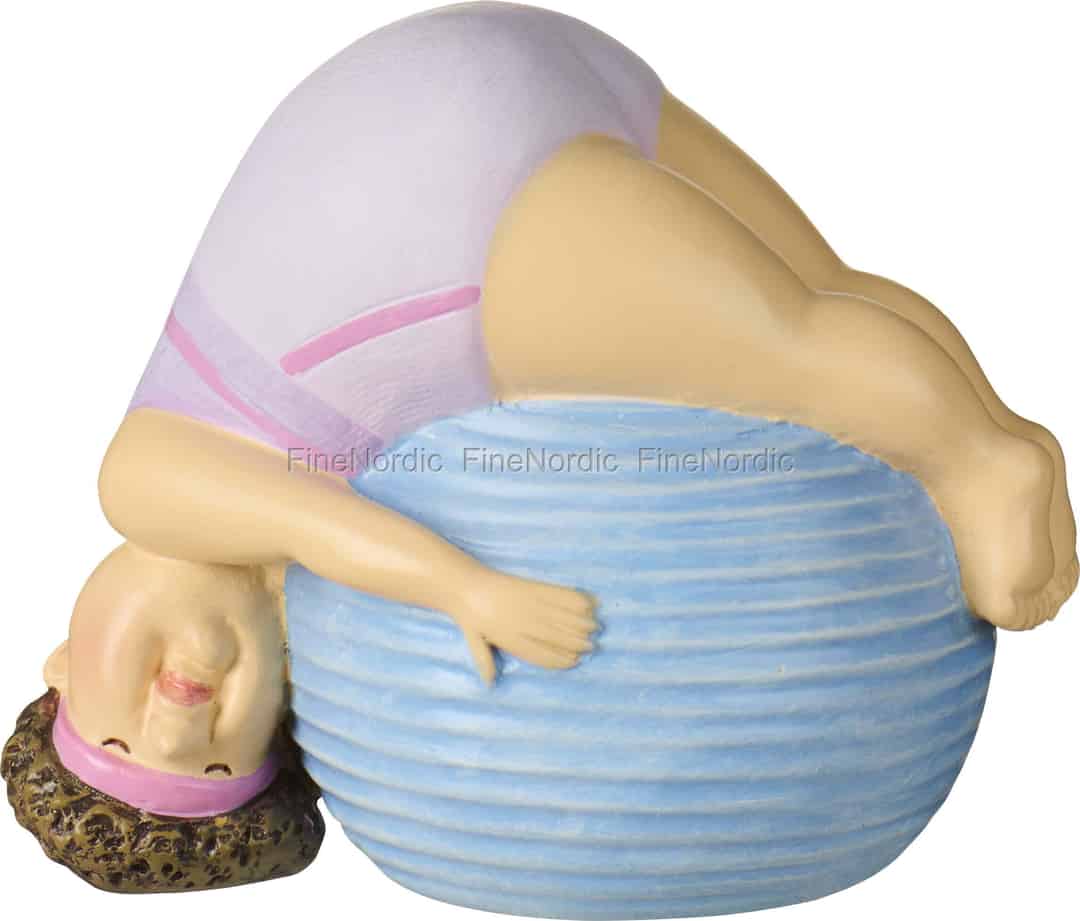 From the creative world of Ib Laursen comes a character brimming with personality and charm. This lovely lady, lost in her moment of blissful stretching, is a tribute to the joy found in everyday wellness. Her contented expression and whimsical pose over the bright blue ball are captured in soft, hand-painted pastel tones, from her lilac leotard to the pink band holding back her textured hair. She isn't about perfect poses, but about the happiness of simply moving and being present.