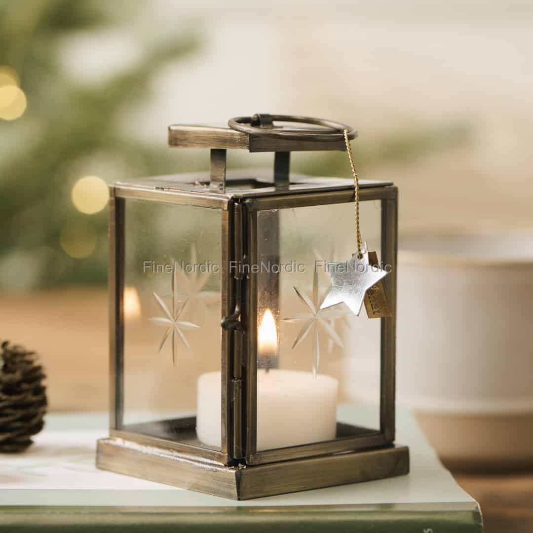 Discover the simple joy of candlelight with this exquisite miniature lantern from Ib Laursen. Crafted with a lovely antiqued brass frame and clear glass panels, it has the feel of a treasured heirloom. The true magic lies in the details: delicate starbursts etched into the glass that come alive with a gentle flicker. A small, hinged door with a simple latch makes it easy to place your favourite tealight inside, transforming this little object into a beacon of warmth.