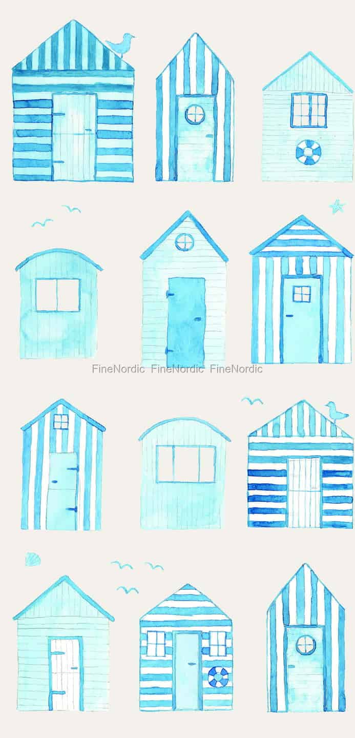 Bring the nostalgic charm of a British seaside holiday right to your home with these lovely paper napkins by Ib Laursen. The design, rendered in soft watercolour blues, features a collection of whimsical beach houses, each with its own character. You'll spot classic stripes, tiny windows, and even a little seagull perched atop a roof. This gentle pattern evokes memories of sandy toes, salty air, and the simple joy of a day spent by the coast, creating a wonderfully relaxed atmosphere for any meal.