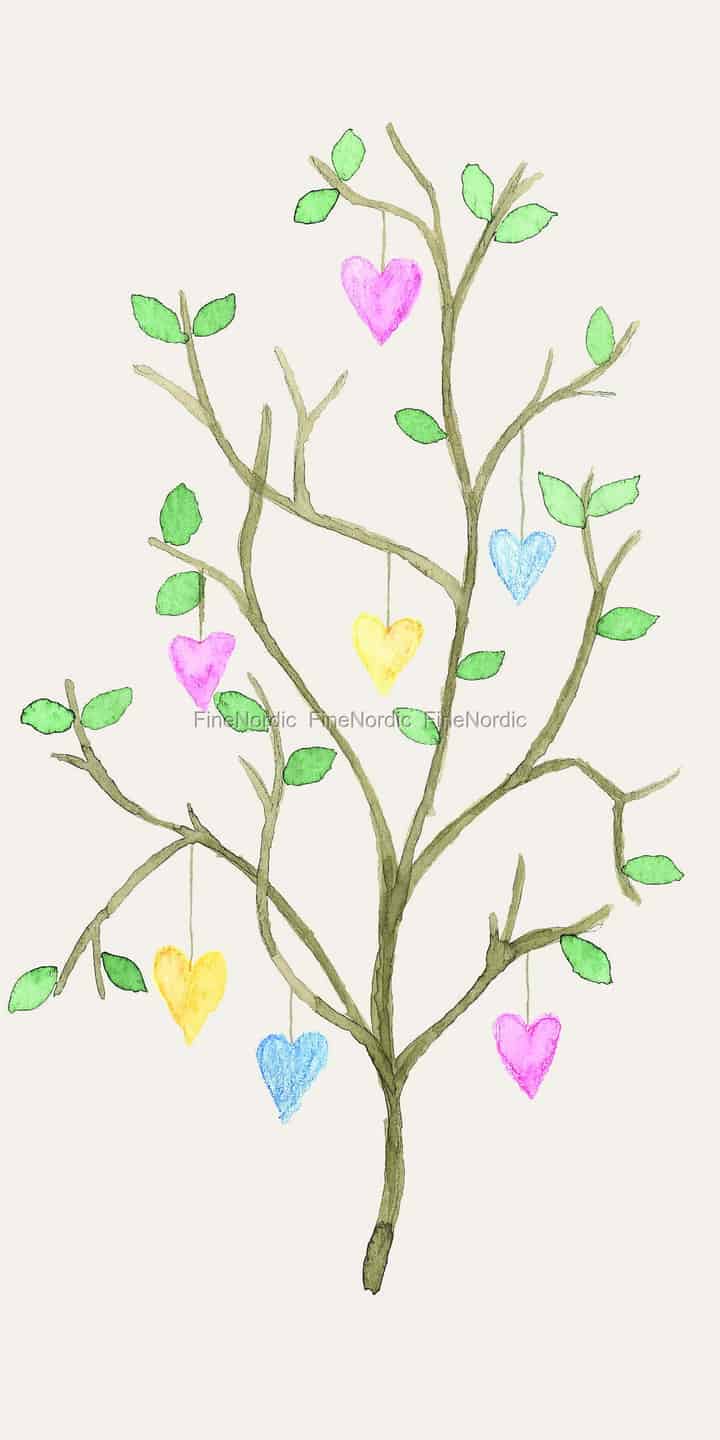 Celebrate the season of new beginnings with this enchanting design from Ib Laursen. The Spring Branch napkin is more than just a table accessory; it's a small piece of art that tells a story of warmth and affection. The delicate watercolour illustration captures the hopeful essence of spring, with fresh green leaves sprouting from gentle branches. Instead of blossoms, tiny hearts in soft shades of pink, yellow, and blue hang like precious ornaments, creating a feeling of pure, simple joy.