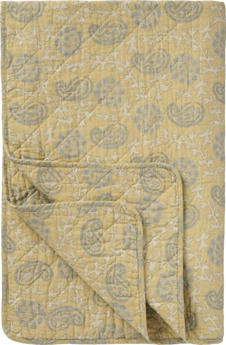 Imagine the soft light of a late afternoon catching the gentle yellow tones of this beautiful quilt. Crafted from pure cotton, its delicate paisley and floral pattern in soft grey and off-white invites you to slow down and find comfort.