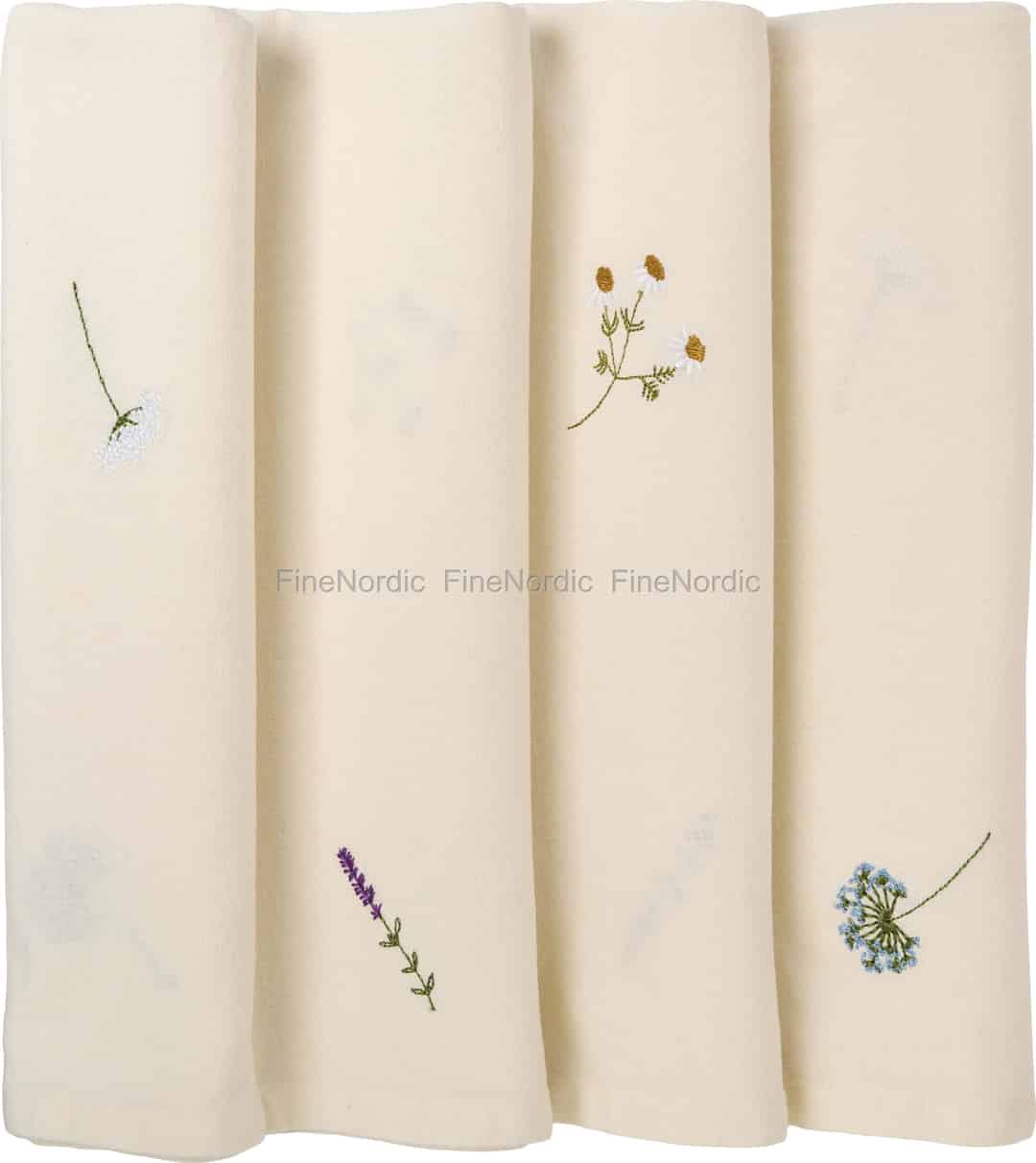 - Exquisite Wildflower Embroidery: Each cloth is adorned with four distinct, delicately embroidered wildflowers, including lavender and daisies, adding a unique, handcrafted charm to your table setting.