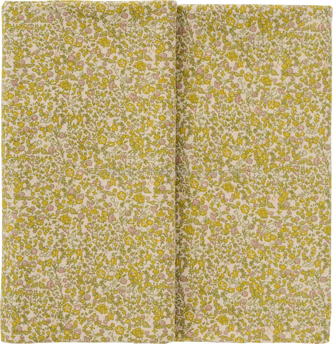 Ib Laursen Tablecloth "Rita" Oblong Natural with Yellow, Green and Light Pink Flowers