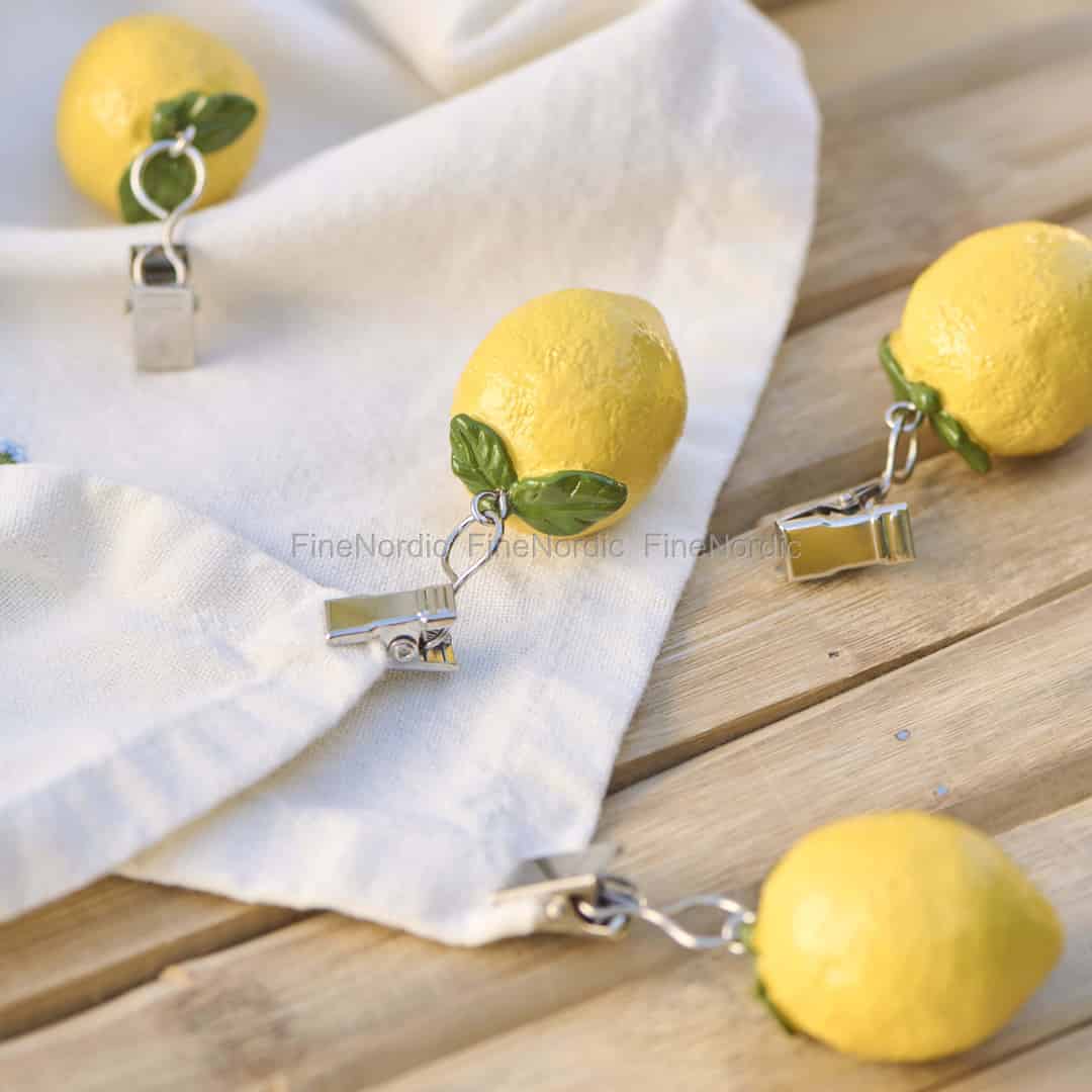 Each lemon is rendered in cheerful, glossy polyresin, capturing the rustic feel of a sun-drenched orchard. The vibrant yellow and fresh green leaf bring life and colour to any linen, from crisp white to patterned fabrics. The reliable metal clips are easy to attach and hold firm, giving you peace of mind. This delightful set of four is a testament to Ib Laursen's talent for creating accessories that are both wonderfully functional and full of heart.