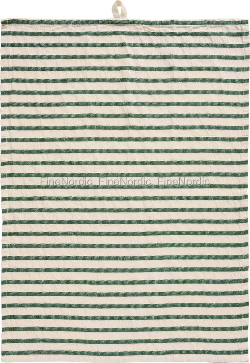 Ib Laursen Tea Towel "Eske" Natural with Dark Green Stripes Across