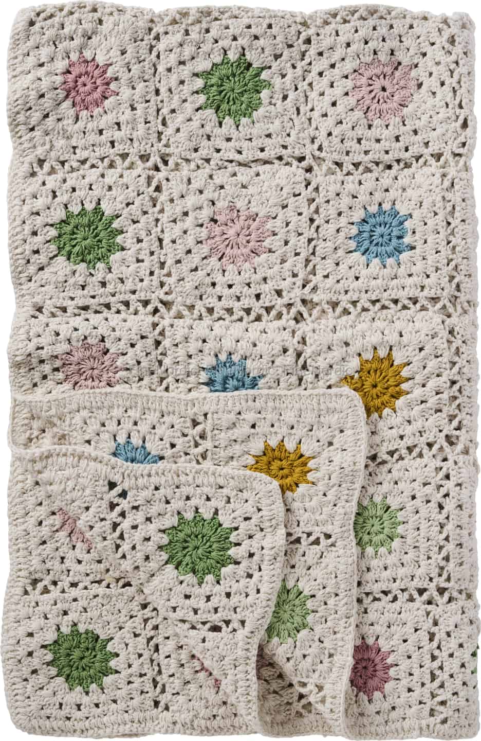 Ib Laursen Throw - Crocheted - Cream - Multicoloured Flowers 130 x 170 cm