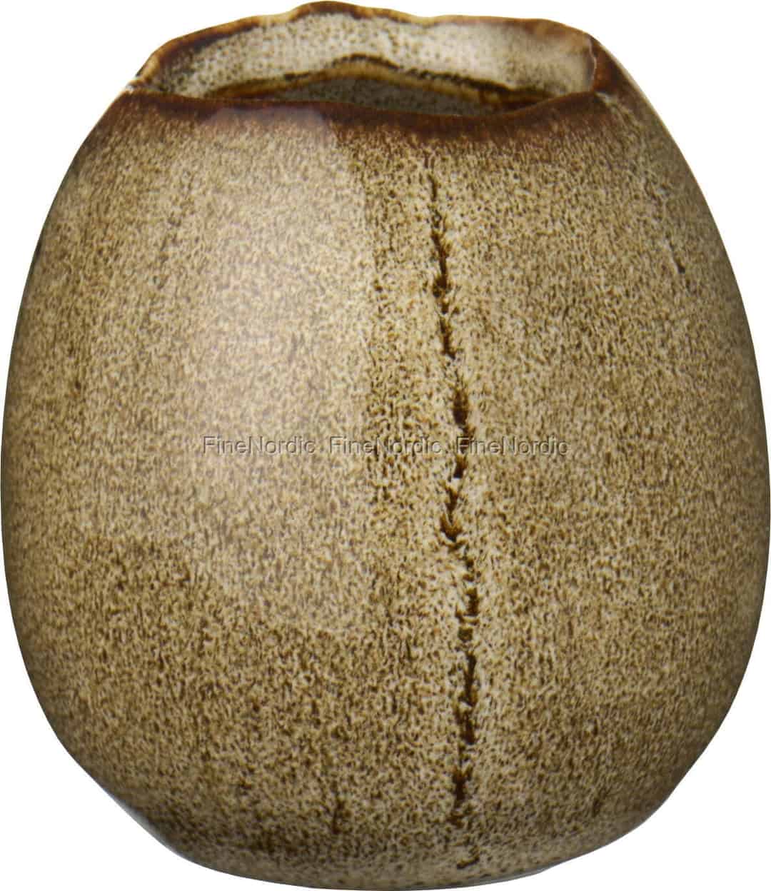 Inspired by the imperfect beauty of nature, this delightful little vase from Ib Laursen is a testament to Scandinavian simplicity. Its rounded, egg-like form rests comfortably in the palm of your hand, inviting you to appreciate its wonderfully tactile, sandy texture. The warm, earthy tones of the speckled glaze are reminiscent of a windswept shoreline, while the darker, glossy rim adds a touch of refined contrast, like wet pebbles glistening in the sun. It’s a piece that doesn’t shout for attention, but rather whispers a story of quiet craftsmanship.