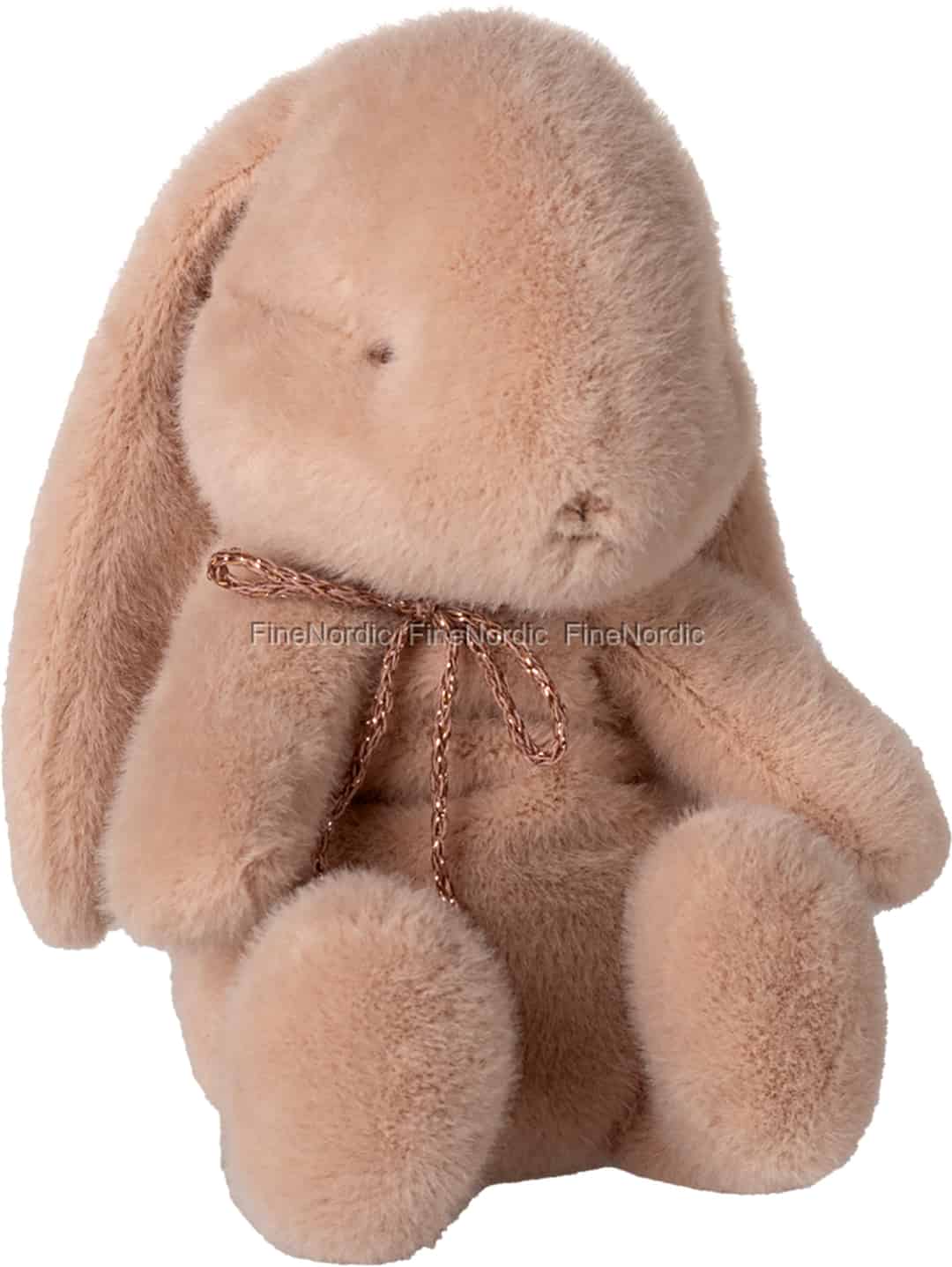 From the heart of Maileg's whimsical world comes a companion designed to be treasured. This little bunny is crafted from a plush fabric so uniquely soft, it must be felt to be believed. Its gentle powder colour and sweet, simple features give it a timeless appeal, while its long, floppy ears and cuddly body are ready for endless affection. A lovely shimmering bow tied at its neck adds a final touch of understated elegance, making this bunny a friend your child will instantly adore.
