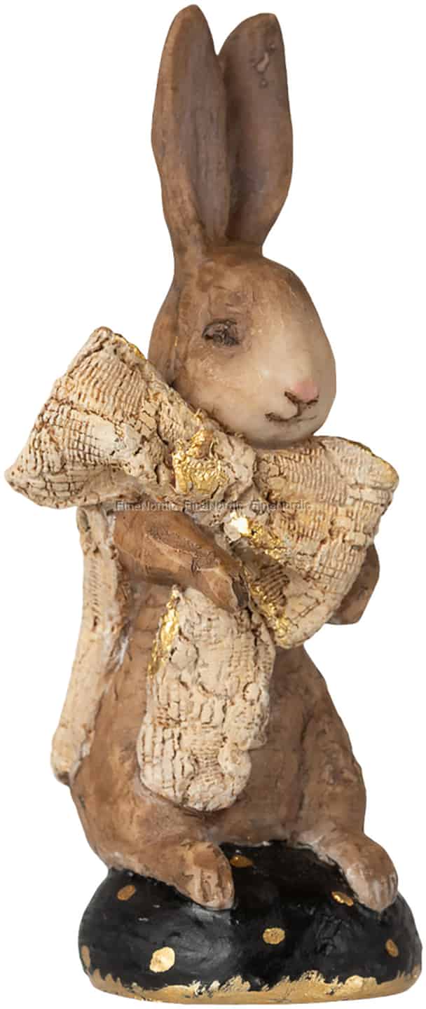 Imagine a quiet corner of a sun-dappled meadow, where a little bunny has curled up for a nap. This is the story captured in Maileg's Easter Bunny No. 15. Every detail, from the serene, sleepy face to the rustic, textured shawl, is designed to evoke a sense of peace and nostalgia. The durable polyresin is sculpted with care, while touches of gold leaf on its wrap and polka-dotted base add a whisper of fairytale magic, catching the light beautifully.