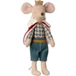 In the grand halls of a miniature castle, a kind and noble ruler awaits. Meet the Maileg King Mouse Dad, a charming character ready to preside over grand feasts, bringing a touch of fairytale magic into your home.