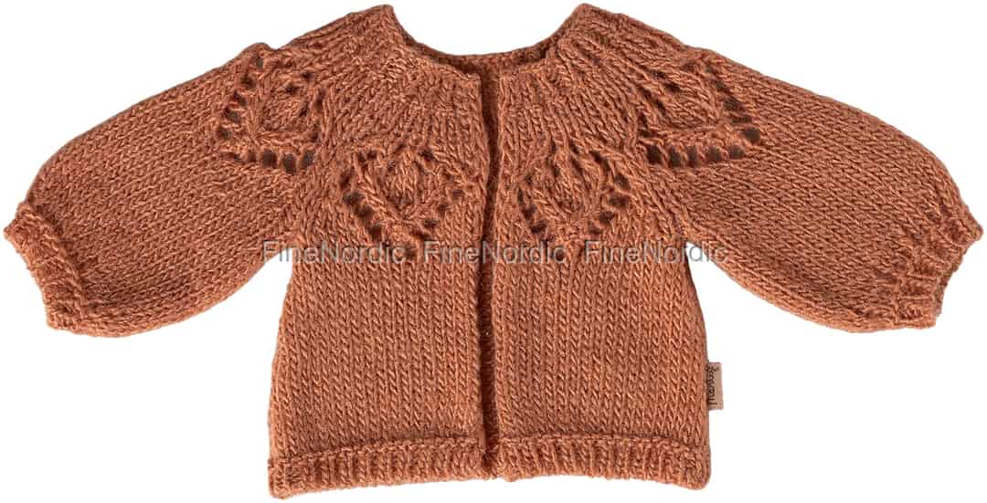 Add a touch of warmth and timeless style to your Maileg friend's wardrobe. This beautifully crafted cardigan, in a soft vintage rose hue, is perfect for chilly adventures or quiet afternoons spent sharing stories.