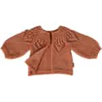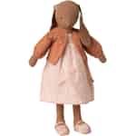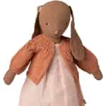 Imagine your cherished Maileg bunny, ready for a trip to the village market or a walk in the woods, wrapped in the gentle warmth of this exquisite cardigan. The lovely vintage rose colour evokes the soft petals of a fading summer bloom, bringing a gentle touch of colour to their ensemble. With its delicate, leaf-like pattern across the yoke and sweet puffed sleeves, this little garment is a testament to the care and detail that defines the world of Maileg. It's more than just an accessory; it's an invitation to create new stories and adventures.