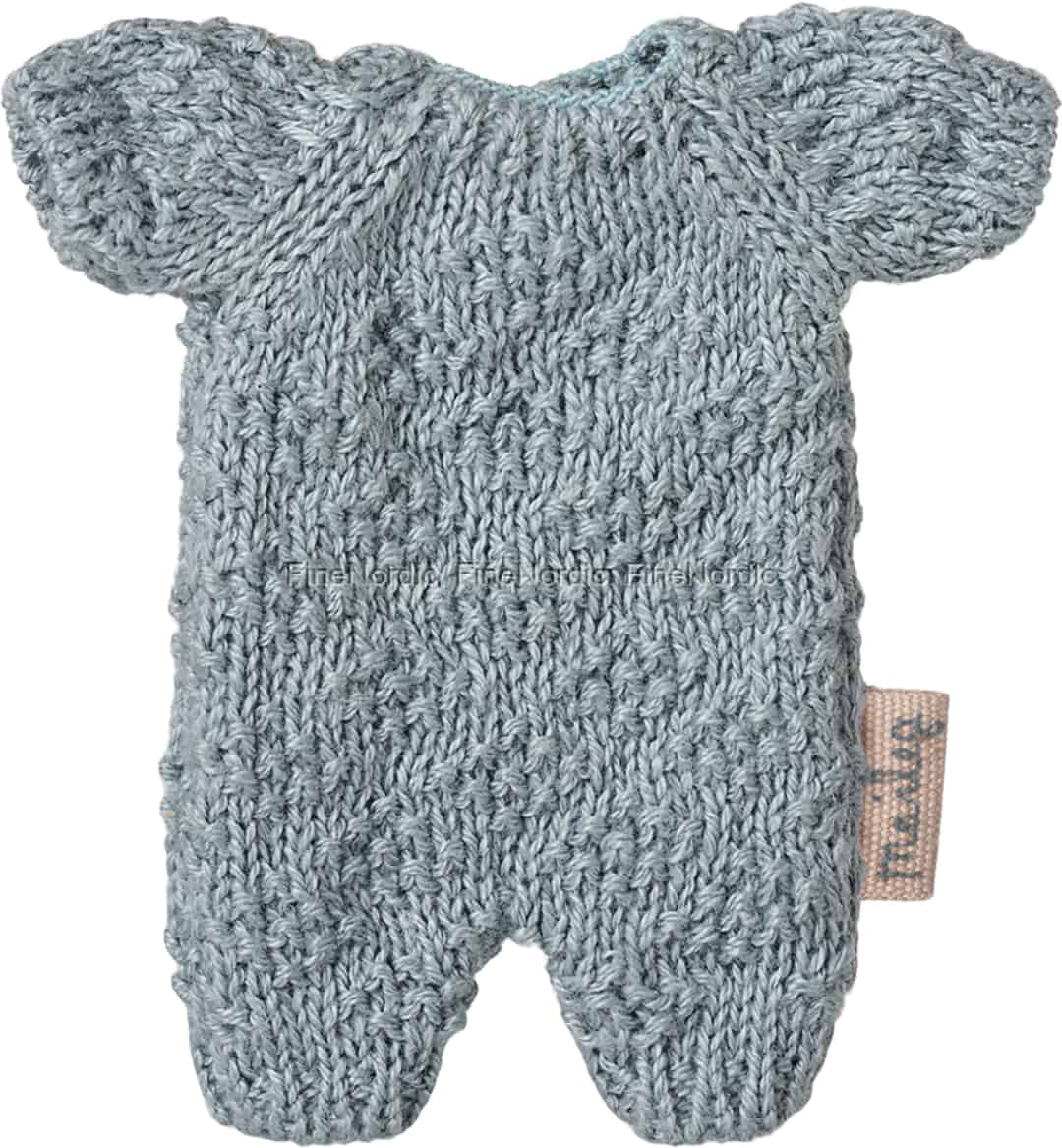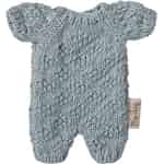 Keep your tiny Maileg friend wonderfully snug in this beautifully crafted knitted suit. Its soft, dusty blue hue and charming texture invite endless moments of quiet play and gentle care.