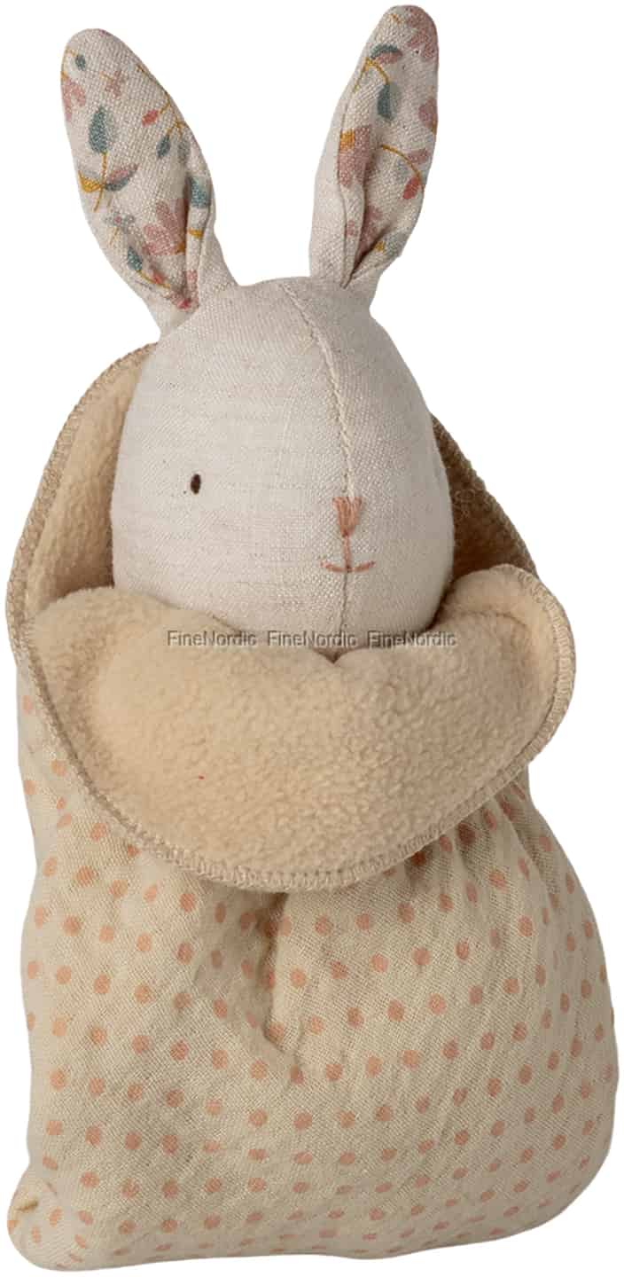 Imagine the softest of cuddles and the quietest of moments. This dear little bunny, nestled in its cosy pouch, is ready to become your little one's very first friend and a keeper of their sweetest dreams.
