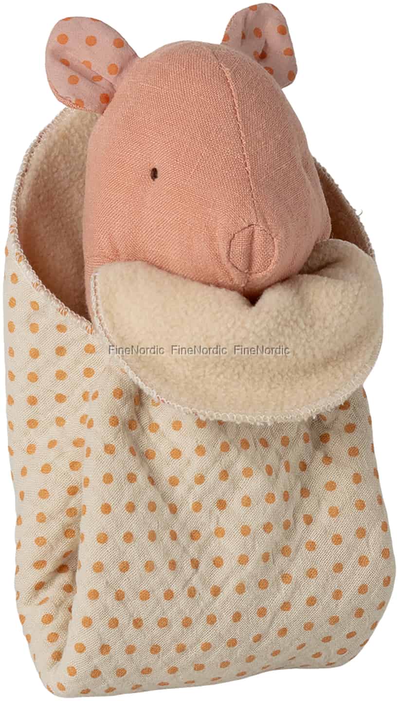 Meet the Lullaby Pig, a tiny friend with a big heart, designed by Maileg to inspire the most gentle of stories. This sweet piglet, with its dusty rose fabric and ears lined with cheerful polka dots, is more than just a toy; it’s a keeper of dreams and a companion for quiet moments. Its simple, stitched eyes and soft form are an invitation for your little one to create a world of imagination, where friendship begins with a soft cuddle and a whispered goodnight.