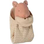 Tucked snugly into its quilted sleeping bag, this little pig is ready to become your child's dearest companion. With its soft, rose-coloured body and friendly expression, it invites gentle cuddles and whispered secrets at bedtime.