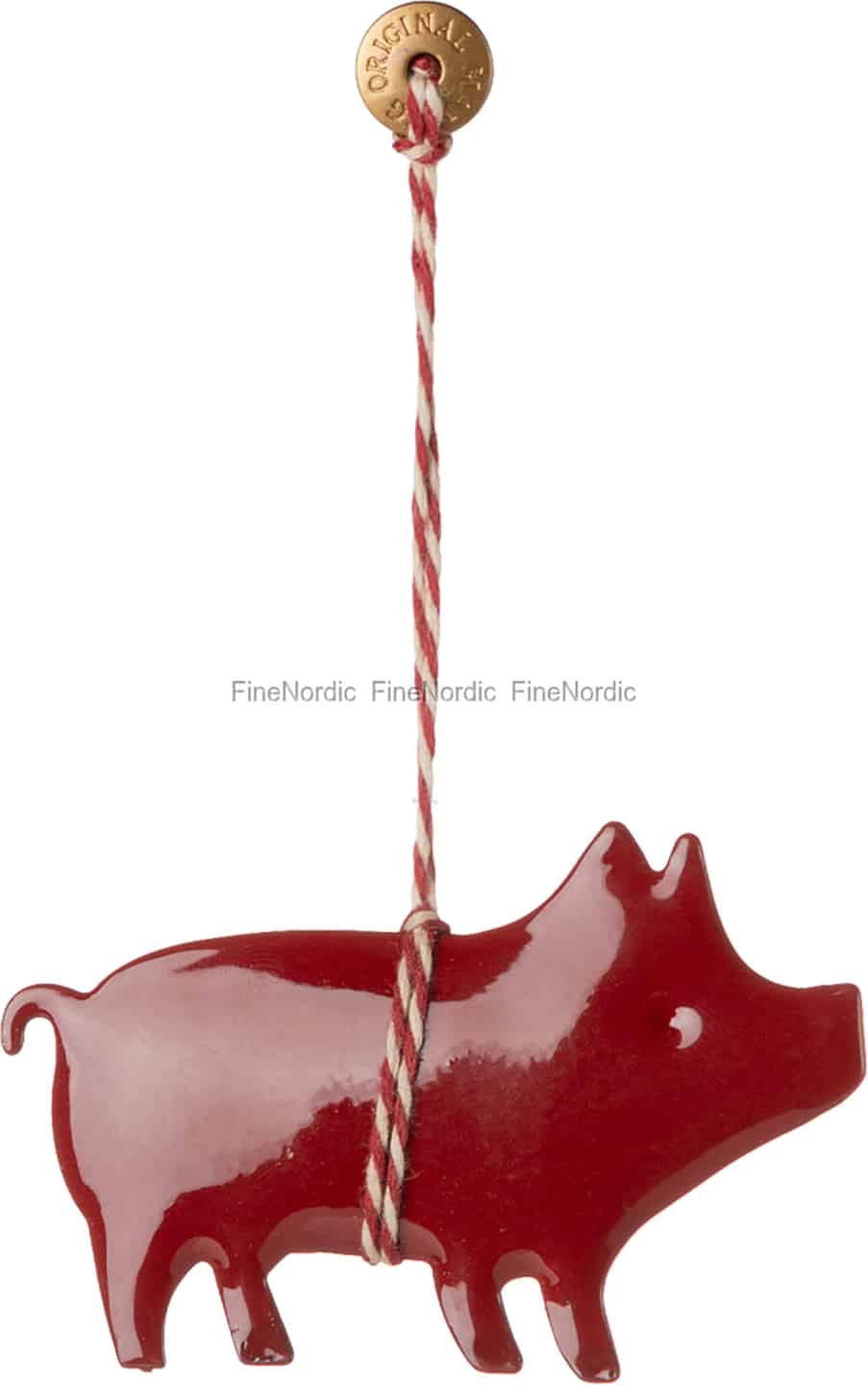 Imagine the soft glow of fairy lights catching the glossy red finish of this charming pig ornament. A delightful character from Maileg, it brings a touch of classic Danish folklore and heartfelt warmth to your festive decorations.