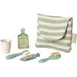 Imagine your little mouse friend waking with the sun, ready to start the day. They can brush their teeth with the tiny toothbrush, take a sip of water from the little cup, and pack their striped wash bag for a grand adventure. Every piece in this set is crafted with the love and attention to detail that makes Maileg so special, from the vintage-style labels to the soft texture of the fabric bag.