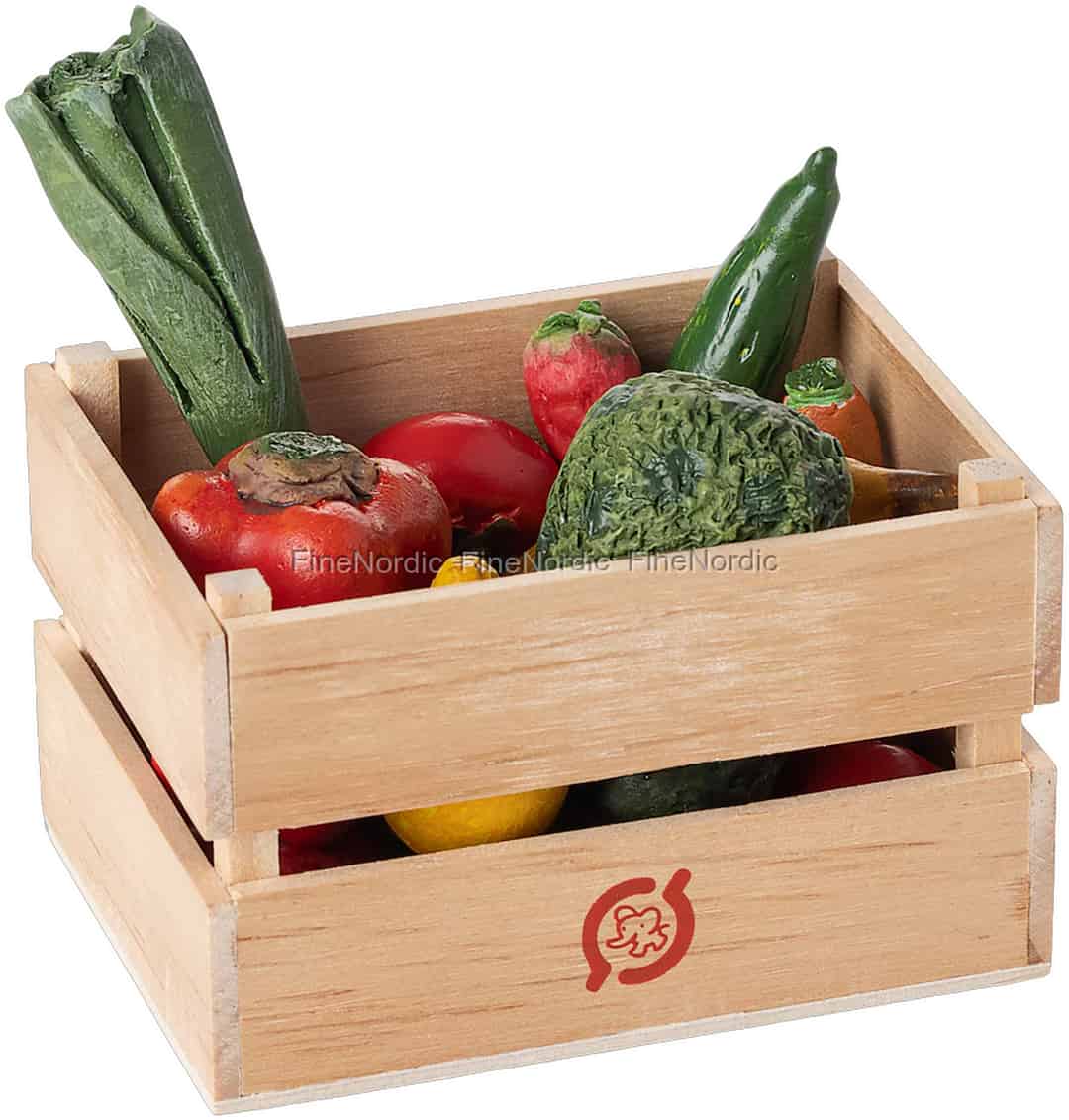 Imagine your Maileg friends returning from a bustling market, their wooden crate brimming with colourful produce. This charming set brings a delightful touch of realism to their tiny world, ready for countless stories of cooking and sharing.