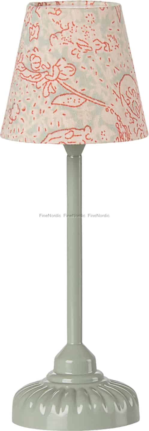 Every miniature home needs those special details that make it feel truly lived-in, and this beautiful vintage-style floor lamp from Maileg does just that. Imagine your little mouse family gathered on the sofa, sharing stories from their day as this lamp casts a warm, reassuring light around them. The soft mint green base has a classic, ribbed design, while the fabric shade is adorned with a delicate, rust-coloured floral print, evoking memories of a summer cottage.