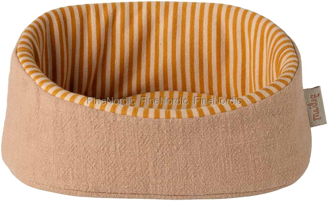 Crafted with the signature charm Maileg is known for, the basket's sturdy, powder-beige exterior has a wonderful, tactile feel. Inside, the warm, mustard-striped lining creates a cheerful and inviting space. The iconic Maileg tag on the side is a quiet promise of quality and authentic design, ensuring this little bed will be a backdrop for countless happy memories for years to come.