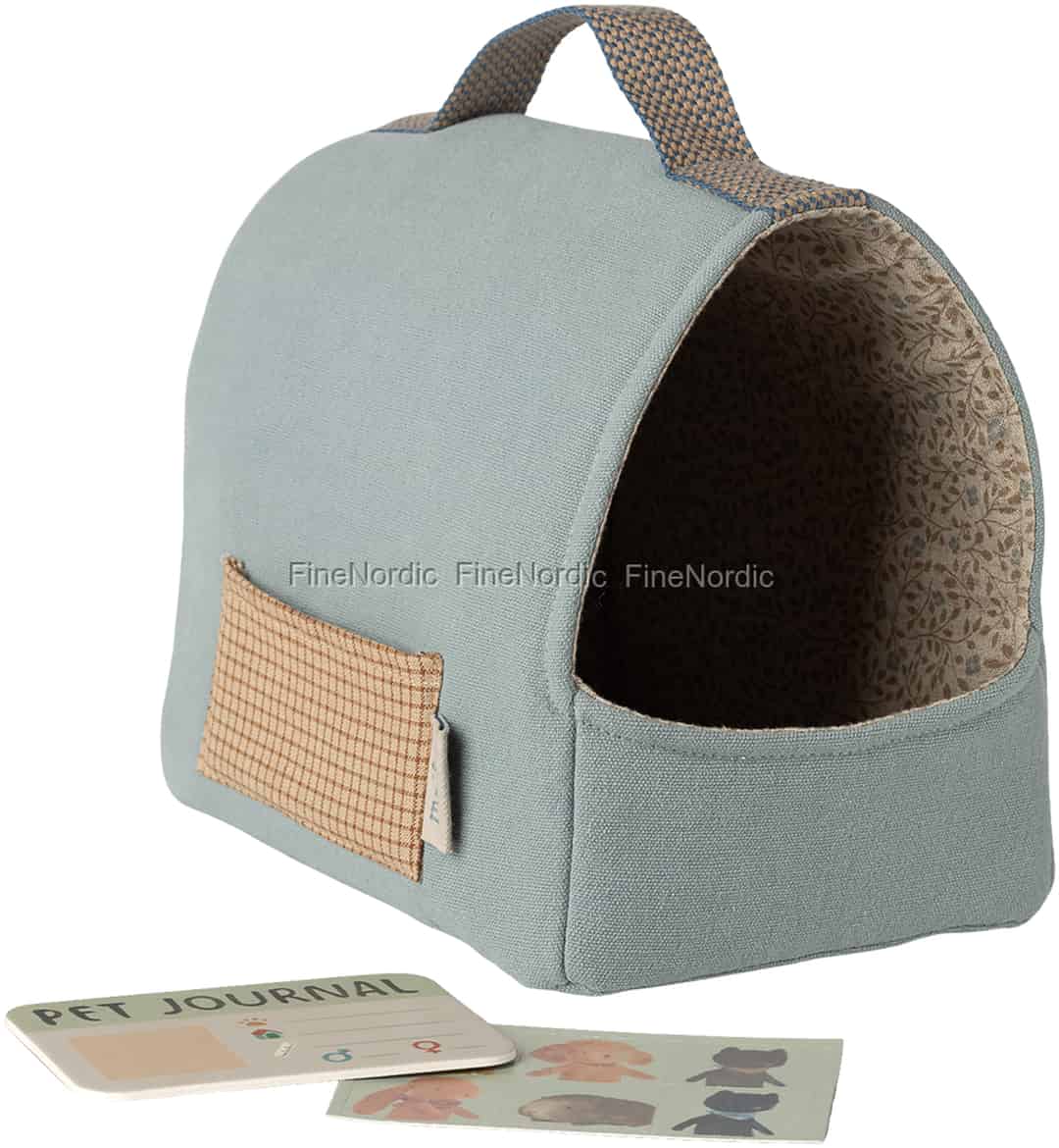 Maileg has a unique gift for turning simple moments into magical memories, and this pet carrier is a perfect example. The soft, dusty blue exterior is wonderfully tactile, while a peek inside reveals a charming lining printed with delicate brown leaves, a secret garden for a sleepy friend. With its contrasting checked pocket and robust woven handle, every detail has been thoughtfully considered to create a piece that feels both timeless and ready for play.