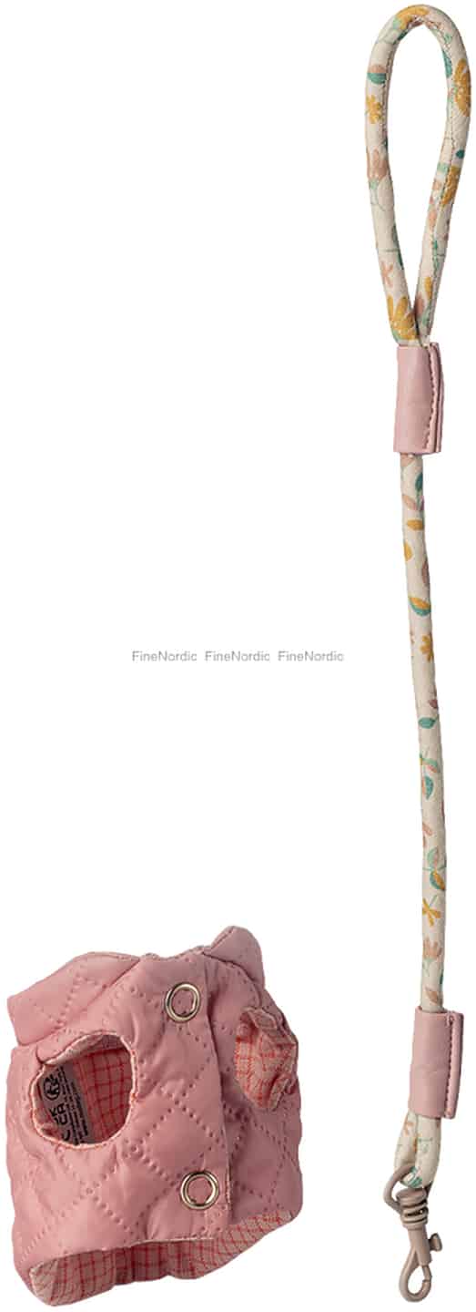Is your little Maileg friend ready for an adventure? This beautiful harness and leash set is perfect for walks in an imaginary park or a trip to the playroom café, sparking endless stories and delightful moments of play.